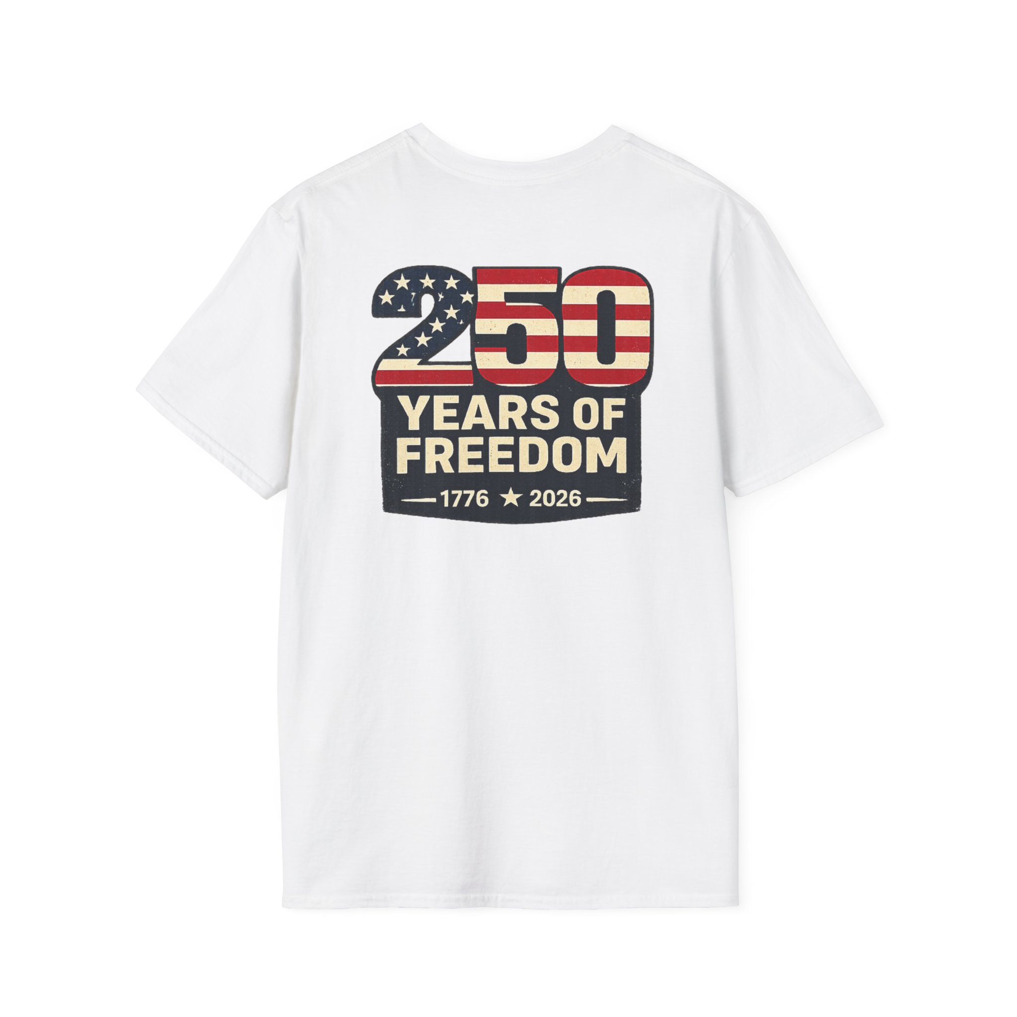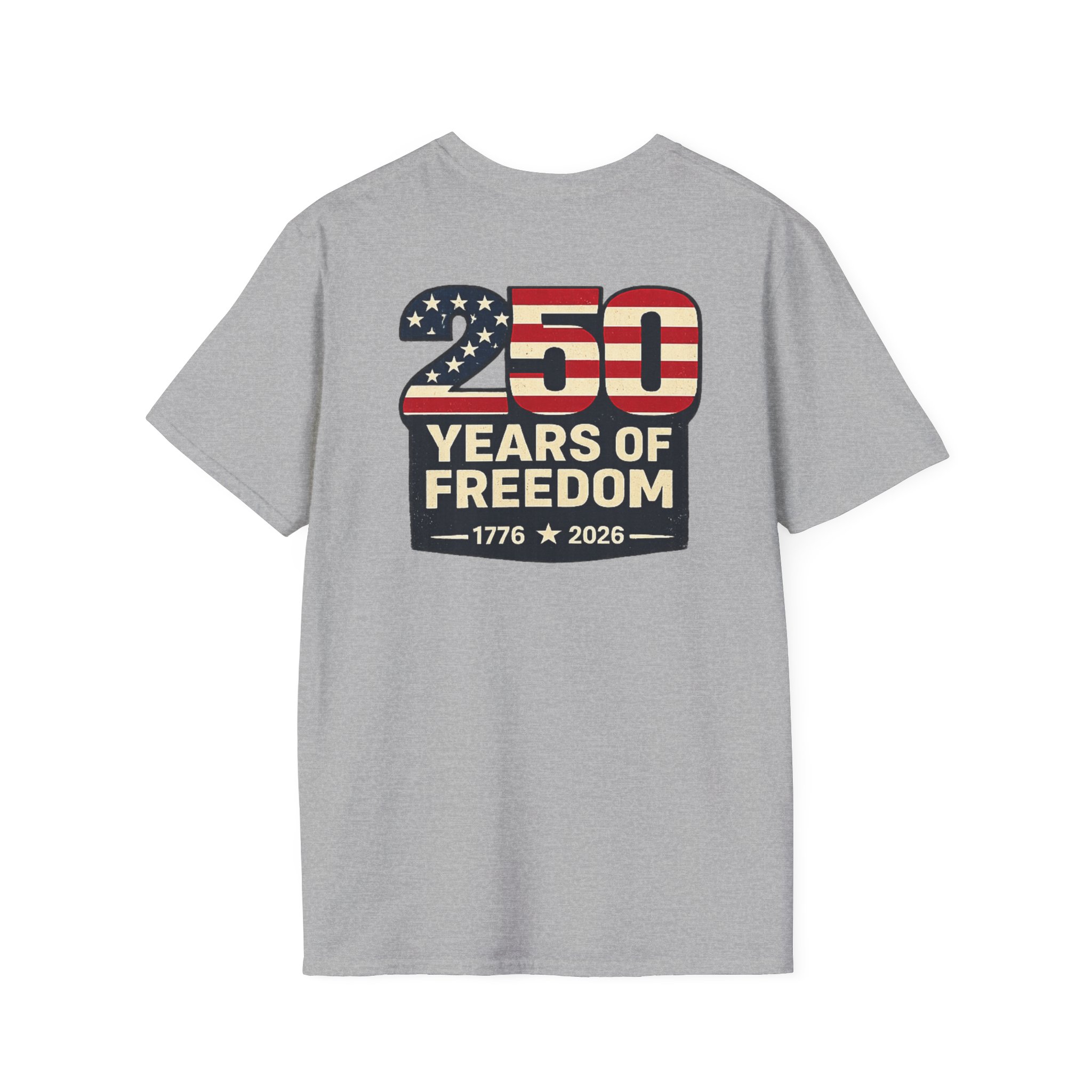 This “250 Years of Freedom” shirt honors the founding of the United States from 1776 to 2026 with a vintage distressed look that stands out on any occasion. Whether you’re celebrating the 4th of July, attending a parade, or just showing your American pride, this shirt is the perfect fit.